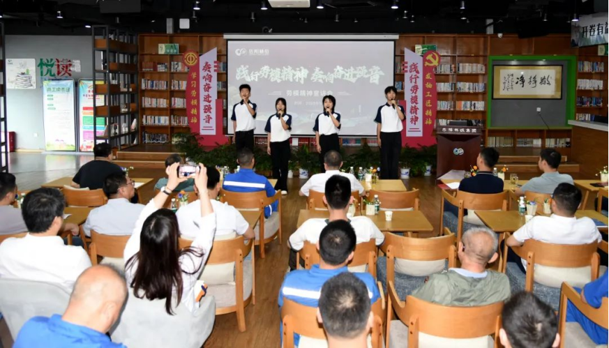 公司技校学生代表声情并茂朗诵劳模诗歌,感染着在场的每一位员工,引起大家对劳模精神的“情感共鸣”。